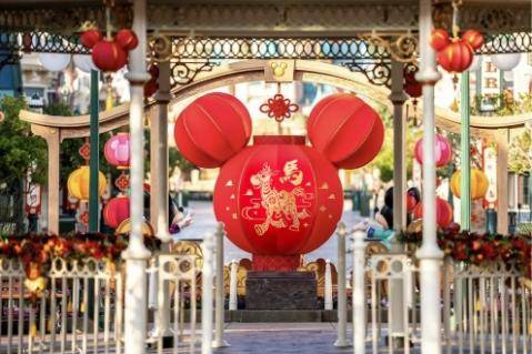 步入马年,乐园各处充满浓厚的新春氛围,小镇广场中央的米奇红灯笼上装饰有为这个新年特别设计的小马红心图案,与全新升级的小镇广场节庆装饰相互映衬,成为全家拍摄新春福照的绝佳背景。