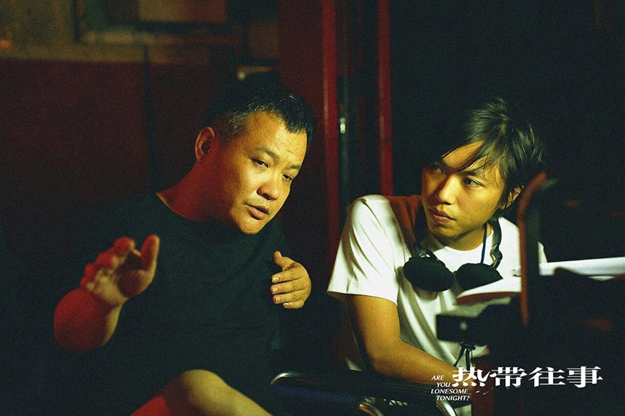 《热带往事》导演温仕培(右)与监制宁浩交流