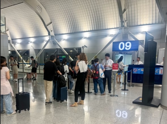 北京—东京(羽田)航班旅客有序办理值机手续(王晨/摄)