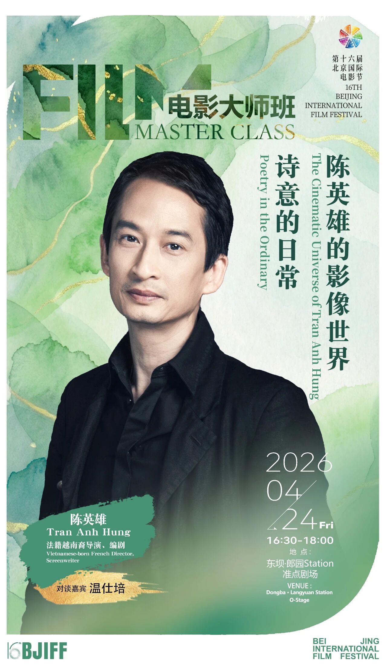 本届北京国际电影节陈英雄电影大师班将于4月24日16:30-18:00在东坝·郎园station准点剧场举办,电影大师班活动在官方独家售票平台猫眼进行售票,开票时间为4月11日12:00,欢迎参与。