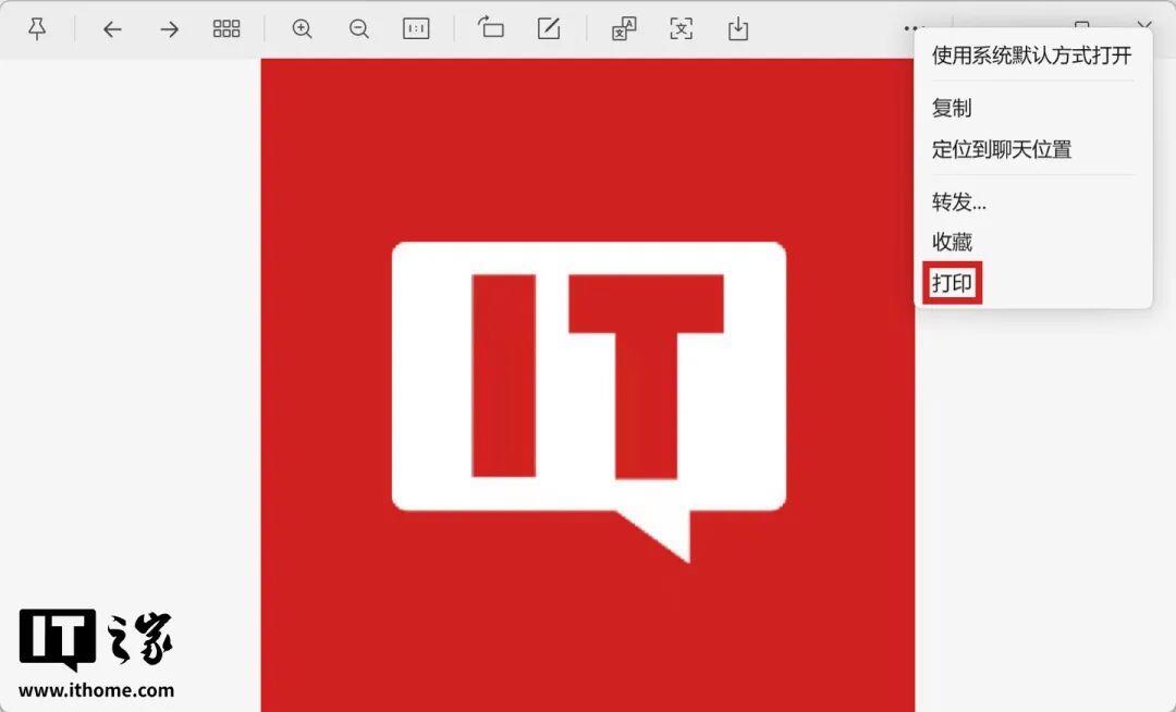 无论是发送还是接收的图片,点开预览界面后点击右上方的“…”,可看到“打印”选项,能够直接调用打印机打印图片。