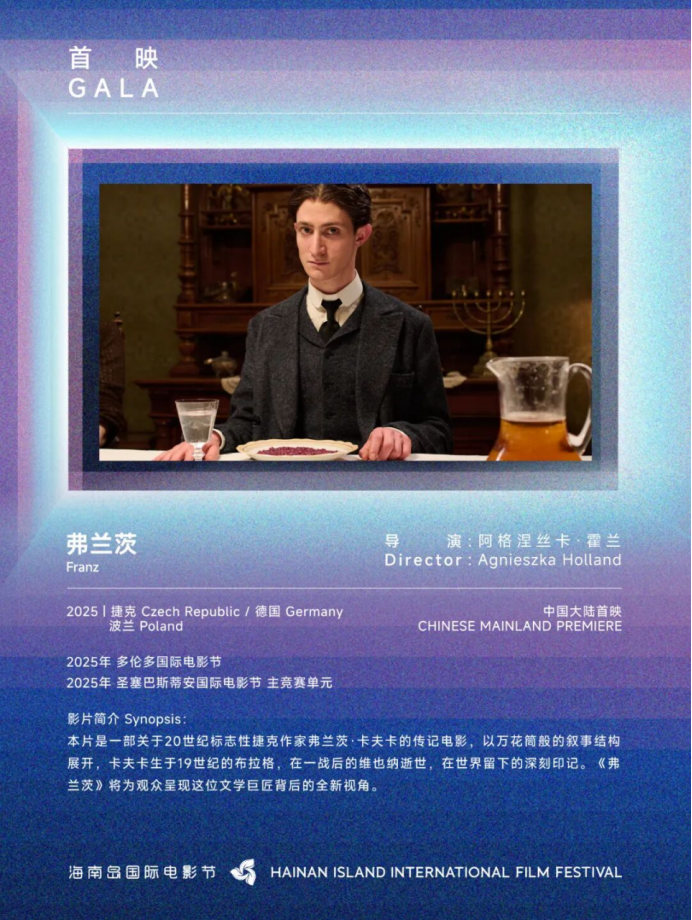 美国演员海莉·盖茨初执导筒,《阿特罗皮亚》将观众拉进一个荒诞但真实感极强的空间,“真实”与“表演”之间的界线被模糊,是对战争、演戏与身份错乱的极佳讽刺。同样“演而优则导”的还有从影数十年的詹姆斯·麦卡沃伊,他以戏谑的方式改编来自家乡英格兰的真实故事,在《加州骗局》中植入对边缘梦想与主流偏见的反思。波兰大师阿格涅丝卡·霍兰以非线性拼贴方式,在《弗兰茨》中将卡夫卡这位文学巨匠的内心世界与时代困境动人呈现。菲律宾当代最重要的电影作者拉夫·迪亚兹的新作《麦哲伦》继续延续着他对宏大历史的哲思,并与著名拉美演员盖尔·加西亚·贝纳尔合作,关注拉美殖民问题。